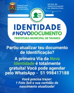 #NovaIdentidade #Tavares #PrefeituraDeTavares #ServiçoAoCidadão #DocumentoGratuito
