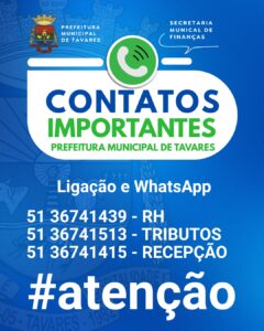 #PrefeituraDeTavares #Atenção #ContatosImportantes #SecretariaDeFinanças #TavaresRS